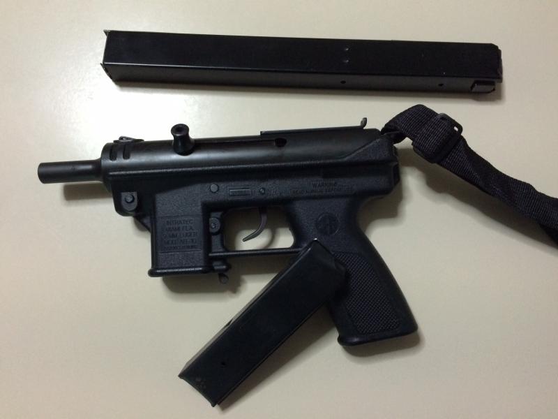 - Intratec AB-10, calibre 9 Pb, arma bastante rara, está guiada en F, con cargador de 12 y otro ornamental de 50. Se entrega con maletín original. PRECIO: 550 € REBAJADA!!!!