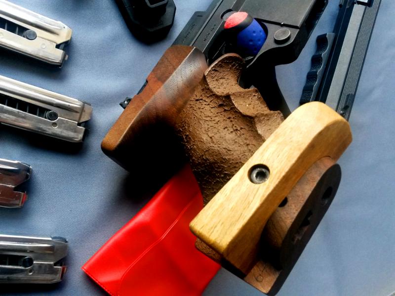 La empuñadura es tamaño "M" y fue personalizada por Ibergrips para una mano mediana, mejorando notablemente el agarre con respecto a su estado de origen. Esta mejora es determinante en el rendimiento en pistola velocidad y standard 20 y 10 segundos.