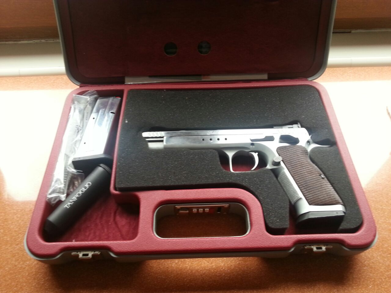 Hola a todos un amigo vende una Tanfoglio P19 Gold Match en calibre 9 mm.pb.,la tiene impecable habrá tirado 100 cartuchos como máximo, ya que solo hacia las tiradas que le exigían en la Federación.y el precio 600 EUROS, , y tendrá unos 3 o 4 años.