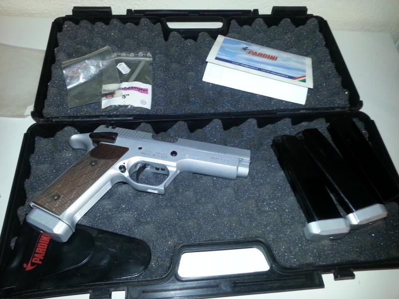Pistola Pardini gt9, cal 9mm , cañón de 5 pulgadas, 4 cargadores ,dos de ellos sin estrenar, maletín y herramientas originales, tiene 4 años y tiradas 8 cajas de balas solamente, perfecto estado mecánico y estético.