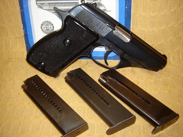 pavón impoluto, ni una señal, ni óxido . Va con su caja de época (años 70) y manual originales, tres cargadores, un juego de cachas de repuesto con sus tornillos, y una funda de cuero para cintura.