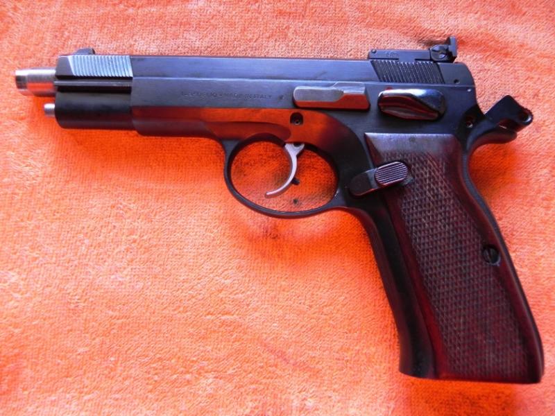 Vendo pistola semiautomática TANFOGLIO, modelo¿P19?.Tiene cañón roscado de 5,5 pulgadas,contrapeso,alza regulable LPA,cachas de madera y un único cargador.La doble acción está anulada,y el gatillo afinado.