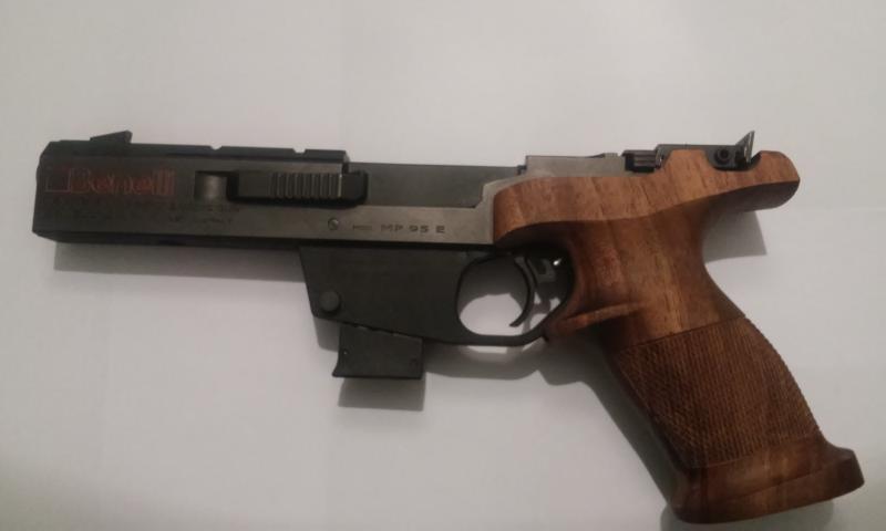 BENELLI MP95E PISTOLA DE COMPETICIÓN en calibre 22 L.R. Es un arma de precisión y alta estabilidad, para conseguir un tiro constante y concentrado. Pesa 1.100 gr. Con una empuñadura muy agradable.