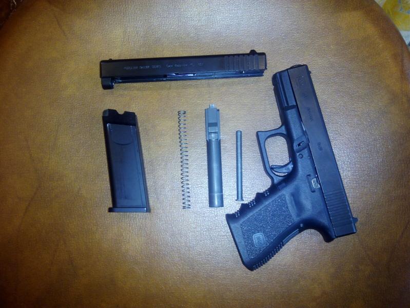 Se trata de una 3 generación, comprada en armería marcos por mi compañero en 2008, a los tres meses de comprarla un accidente le rompió la pierna y la vertebra C7, por lo que ha estado de baja y al final jubilación, la pistola tiene gastados 2 cargadores con el 9mm, puesto que ha estado guardada con el 22 unos 200 disparos sin problemas, el kit es el Ciener.