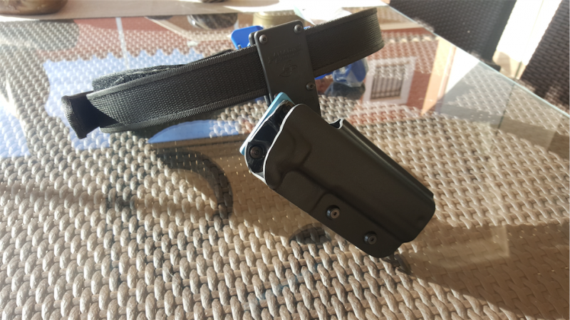 La pistola ha sido usada muy pocas veces, pero el cinturón una sola vez. (Como se aprecia en la foto no llegue a montarle ni el tercer portacargador.