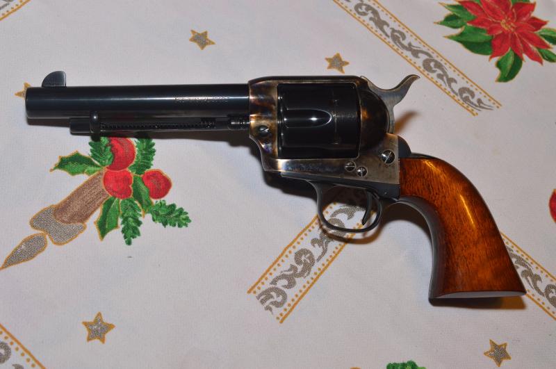 Se trata de la conocida reproducción que hace Uberti del Colt S.A.A. de 5½" en el calibre .45 Colt (LC)