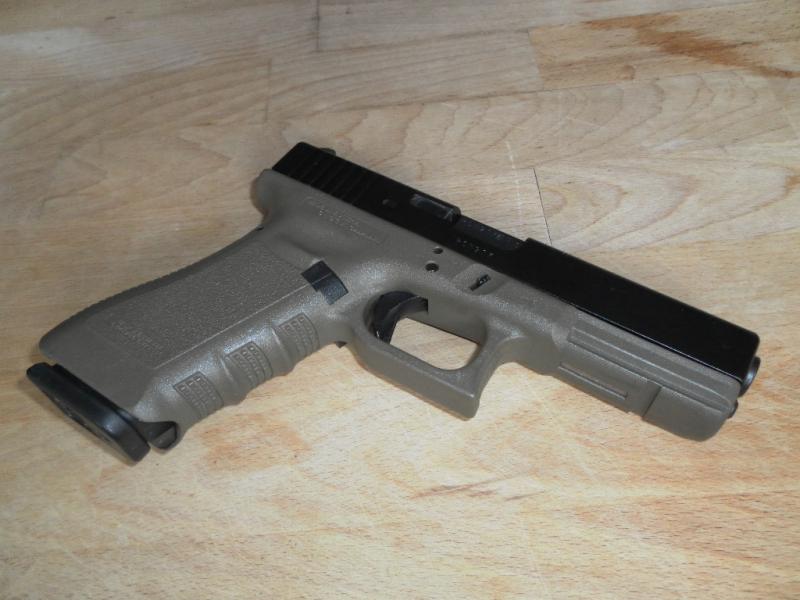 Vendo una Glock17 Green, osea verde, en buen estado y con tres cargadores, desconector de dos kilos y retenida del cargador larga, por 320 euros mas portes. El armas está en Madrid y guiada en F, también me interesa hacer un cambio por una Glock19 en buen estado con tres cargadores y guiada en F, da igual que sea negra. Si alguien la quisiera para empezar en ipsc por 50 euros mas incluyo una funda/pinza de ipsc