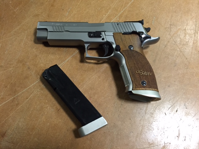 Una Sig Sauer P226S en caliber 9mm Pb. Acabado inox y cachas de madera. Con maletin original. Como la anterior en estado excepcional practicamente sin uso.