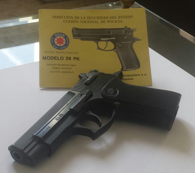 La Star Pk 28 ha sido de dotación en el Cuerpo Nacional de Policía desde el año 1985 al 2005. Se encuentra en muy buen estado, con pocas señales de uso. Ha sido adquirida en una subasta en Alemania. Pistola que es difícil encontrar en España.