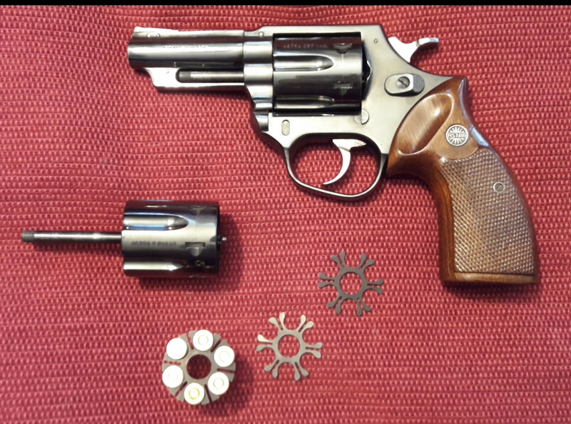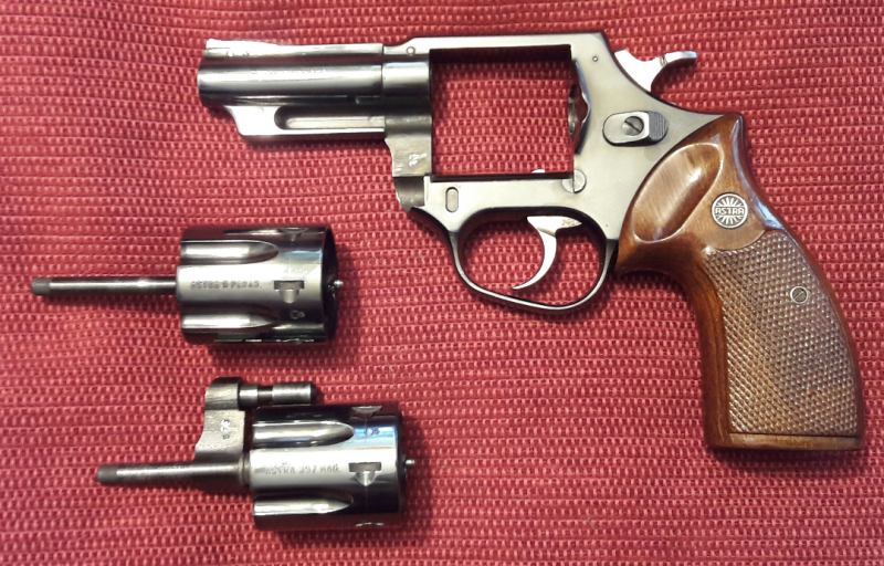 Hola compis, como no se puede tener todo y nadie ha querido comprar mi excelente HK USP compact inox "de luxe", vamos a tratar de hacer hueco así: VENDO en Madrid impecable y original Astra Police de 3" con su doble tambor de .357mg/.38Spl y el de 9mm Parabellum. Guiado en F. El tambor se cambia en segundos pulsando un botón de desbloqueo. Con tres estrellas para los cartuchos del 9. Extraordinarios ajustes y perfección mecánica. De lo mejorcito del acero nacional. Pavón impecable. Cachas inmaculadas.