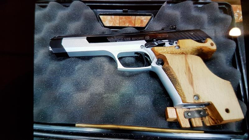 Buenas a todos. Vendo mi cz 122 sport cal.22lr esta impecable con 2 cargadores , cacha original y otra anatómica de madera al natural , maletín de transporte este no es el original. La cacha anatomica es artesanal hecha por mi mismo, la pistola es de 6" y guiada con licencia F. Incluye útiles de limpieza. Se vende por problemas de visión mios y no poder renovar la licencia. Este arma es del año 2001. Se vende por 250€ o aceptaria un cambio por carabina de aire.