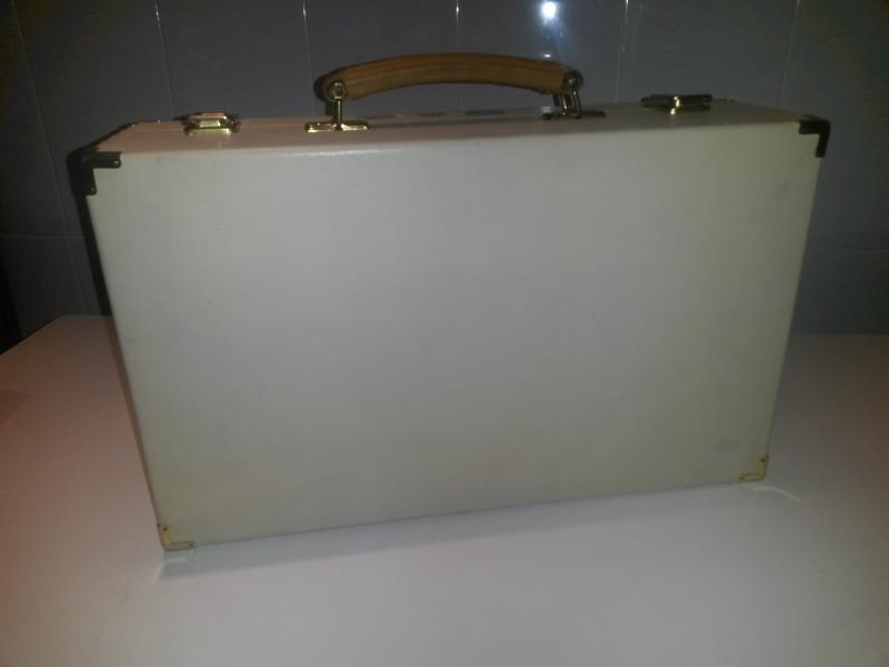 Maletín original forrado en piel beige y asa en cuero. Un trabajo bien hecho, el del maletín.