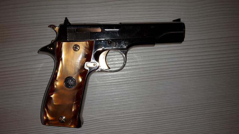 Se vende star s, hecha de encargo, en cromo brillo con los mandos bañados en oro y cachas de nacar, con miras micrométricas para tiro y adaptadas por ipar guns para dar la medida correcta para guiarla en F, y aprobado por el BOPE,funciona perfectamente aunque solo ha estado expuesta. no se ha utilizado para tirar, con lo que está totalmente nueva. la vendo por 460 euros y regalo accesorios.