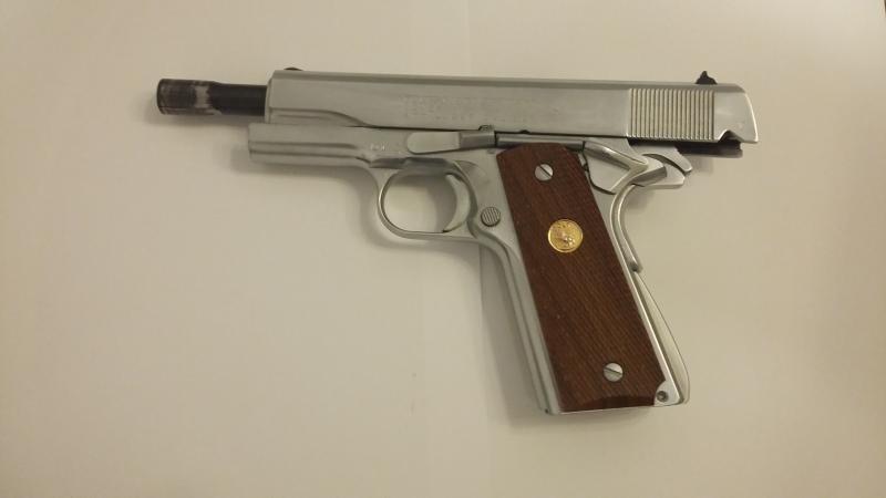 Se trata de un Colt 1911 Government MKIV Serie 70 de 9 mm. Es una pistola de época, fabricada al final del periodo de los serie 70 poco antes que saliera la Serie 80.