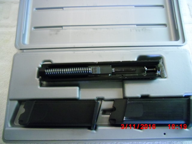 a calibre .22. Calidad excelente. Con 2 cargadores para 10 tiros. En USA se venden solo con 1 cargador. No ocupa puesto en la licencia, IA la guia con la pistola. Gambio del calibre en segundos, mismo sistema ,el caro y cargador como de 9mm.