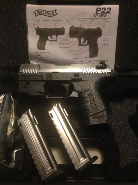 Vendo Walther P22 en el pack incluyo el puntero laser, las cachas suplementarias y dos cargadores (uno de ellos sobredimensionado). Muy poco uso. 250,00 €