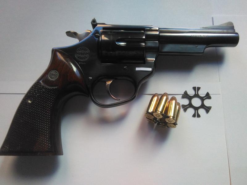 El revolver no es del calibre 357 con tambor de 9mm.Parabellum.Es un Astra modelo 357 con cañón y tambor específico del calibre 9mm.Parabellum,es lo que lo diferencia del modelo Pólice en el que el cañón es el mismo para ambos calibres.