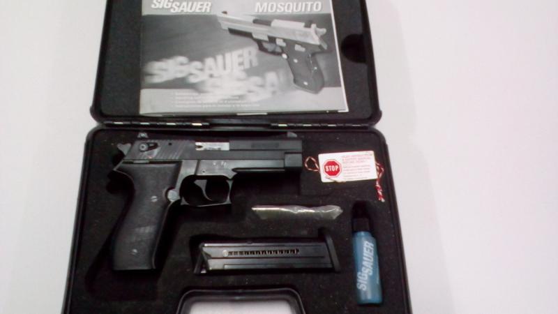 Hola a todos, se vende esta pistola de la marca Sig-Sauer, modelo: Mosquito, calibre: 22Lr. Dos cargadores de 10 cartuchos, maletín de transporte, segundo muelle recuperador, dos puntos de mira adicionales, libro desarme y mantenimiento.