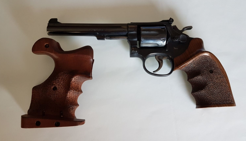 Revolver usado con excelente precision i disparador. Lleva dos cachas, una knill que es la que lleva puesta y una de precision, las dos talla mediana. Precio 425 euros.