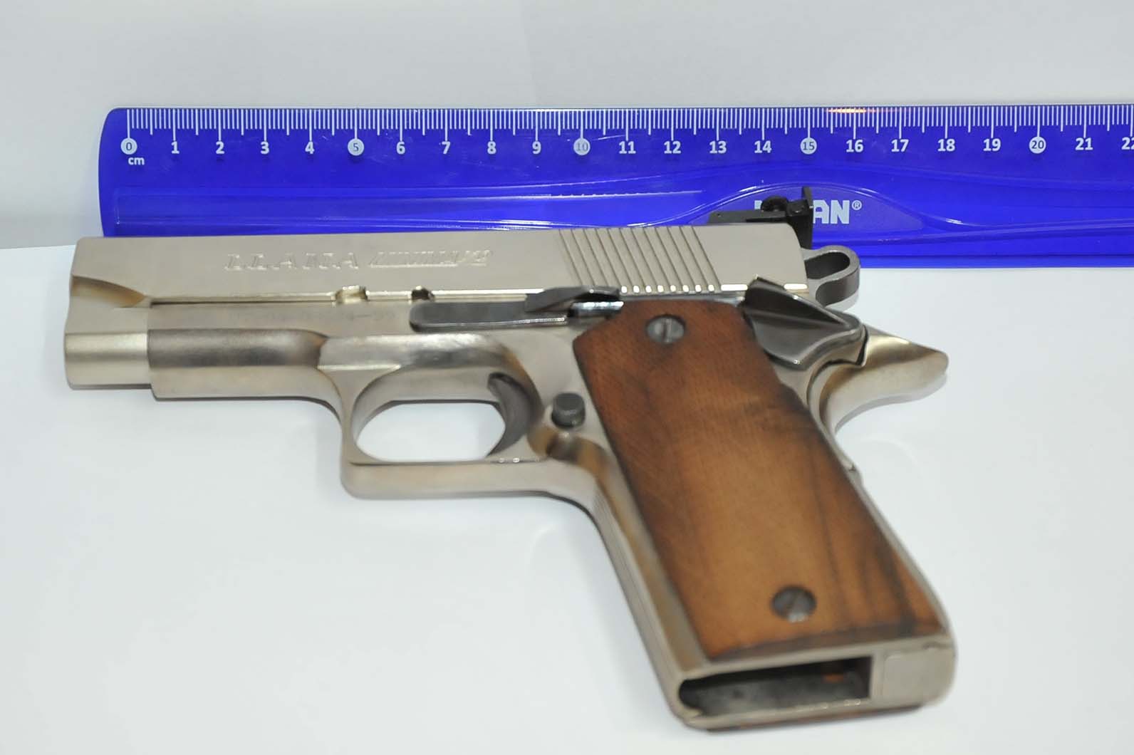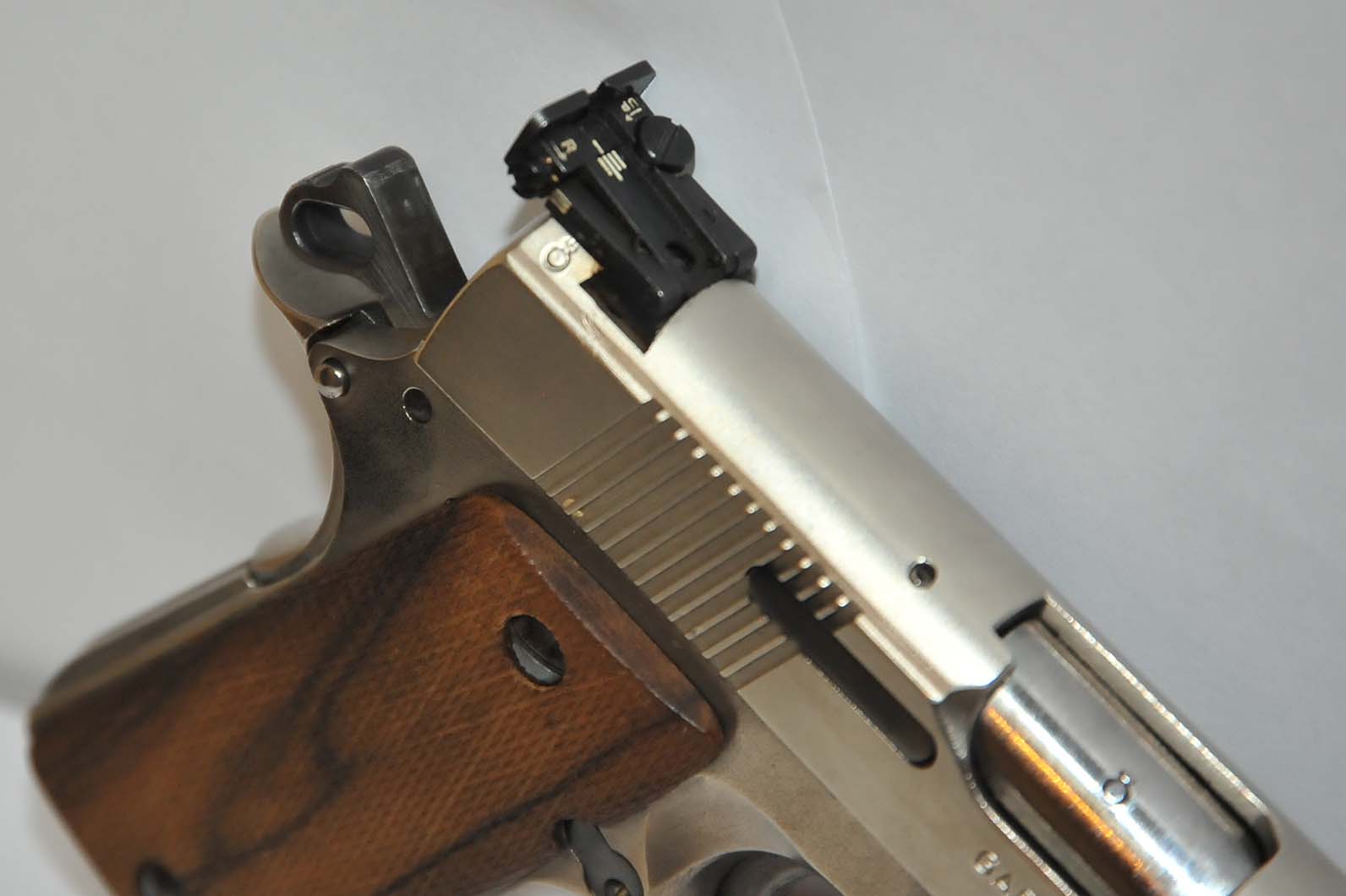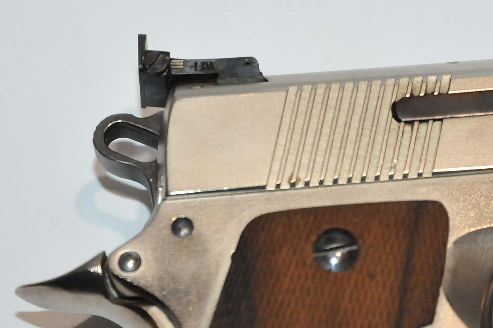 El arma con munición recargada con poca carga suele dar interrupciones pero con munición original automatiza bien. En las fotos se ha emborronado el numero de serie por seguridad.