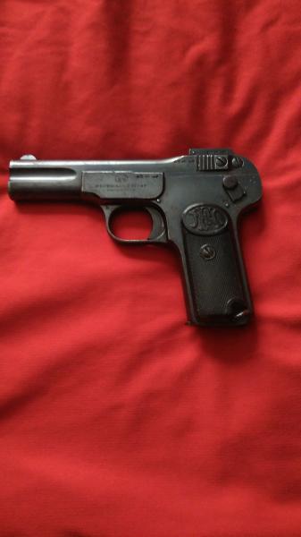 Vendo pistola FN 7,65 guiada en f. Totalmente original, números coincidentes en perfecto estado de uso. La tengo guiada en f y necesito hueco. Fabricada entre mediados de 1907 y principios de 1908 tiene mas de 100 años y marcas de desgaste por la funda, parece que estuvo en servicio. El precio de venta 450€ negociables, también admito cambio por carabinas o escopetas