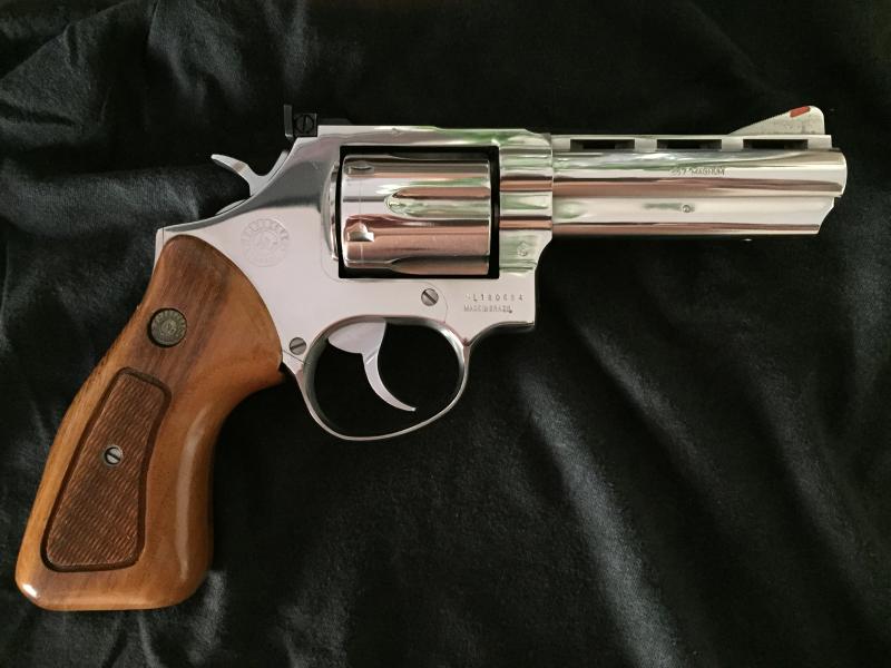 Vendo o cambio por pistola 9 mm en similares condiciones , precioso revólver plateado en brillo Taurus 357 magnum de 4 pulgadas. Está totalmente nuevo, no tiene uso, ni un arañon tanto en el cromado como en la madera. 250 euros, baratísimo para el magnífico estado en el que se encuentra.