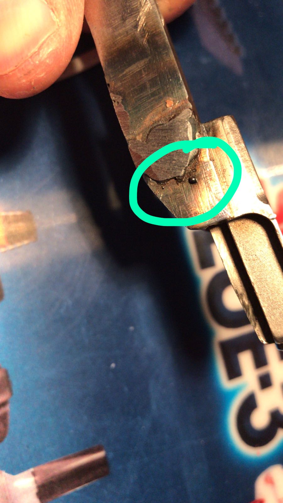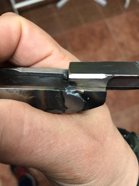 Cuando me llega el arma, me encuentro que bueno efectivamente las soldadaduras estar estan pero de láser NADA, y la delantera que encima nada de no pulir para reforzarla sino q es una soldadura posterior porque ya ha rajado la interior que le habían hecho y han tenido que hacer una nueva chapuza por fuera.