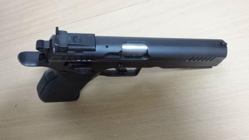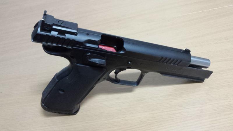 Pistola semiautomática. Doble acción. Calibre 9 mm. cañón de 125 mm de largo. Capacidad de 15 tiros. Peso total de 1,2 Kg. Diseñada para competiciones de tiro en movimiento. Cañón cilíndrico. Corredera de acero con laterales ranurados que favorecen el accionamiento. El armazón es de una sola pieza hasta la boca del cerojo para mejorar el balanceo del arma. Riel en donde pueden colocarse una linterna o dispositivo láser. Retén del cargador custom. Seguro ambidiestro.