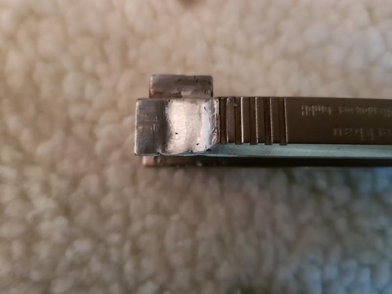 Añado en el anuncio fotos de la soldadura en la corredera por todos los lados, para que se pueda observar perfectamente que está en un estado impecable. En la parte contraria (la ruptura según está montada la pistola sería delante y a la derecha) tenía una pequeña fisura que no llegaba a romper la pieza pero por mayor seguridad se soldó y ya se ve el estado.