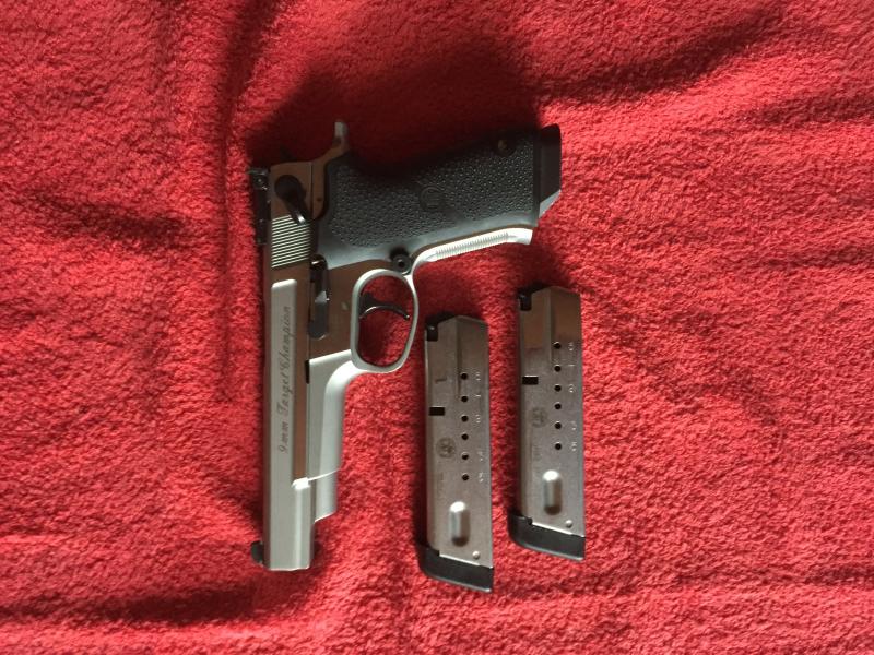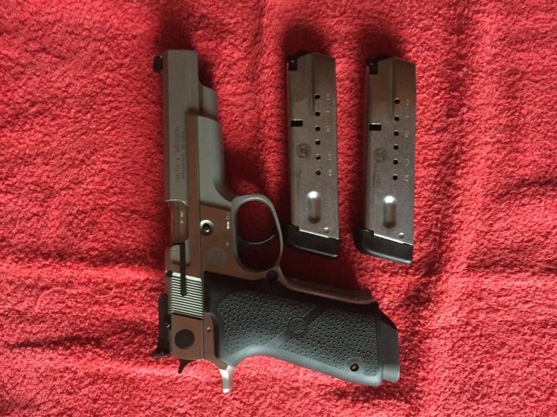 5.-Pistola SMITH & WESSON, con dos cargadores, maletín, en perfecto estado. 850€