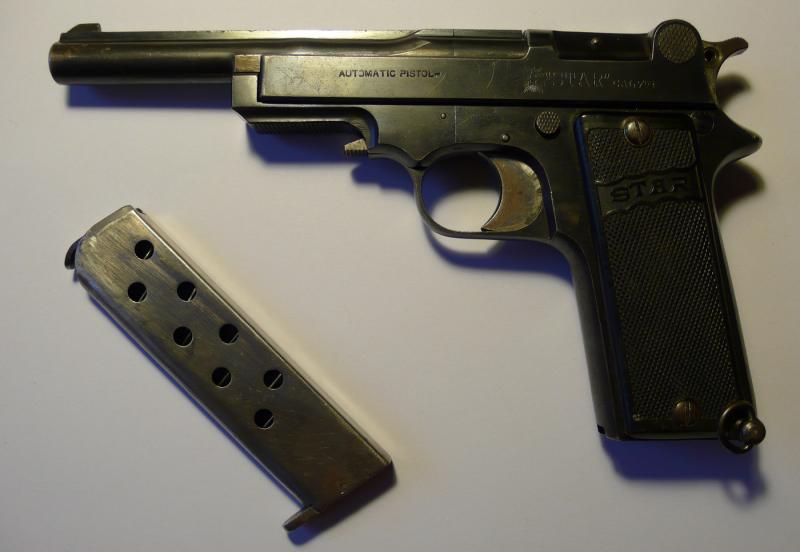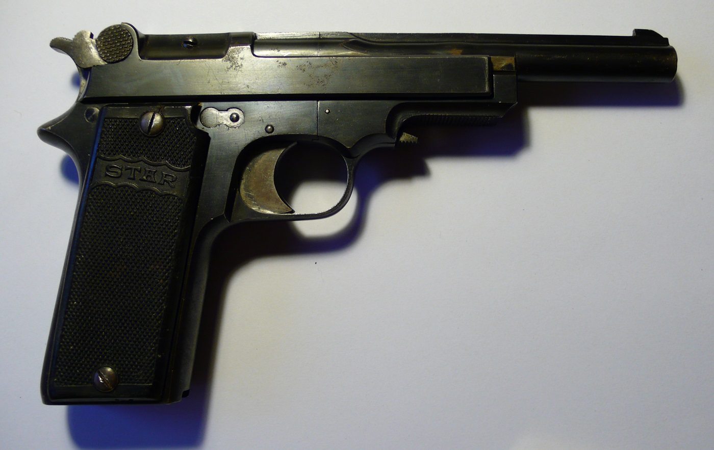 Se vende Star Sindicalista guiada en F, con un cargador es de calibre 7,65, la pistola tiene una hernia en el cañón que no impide su correcto funcionamiento, está en Zaragoza y su precio son 80€.