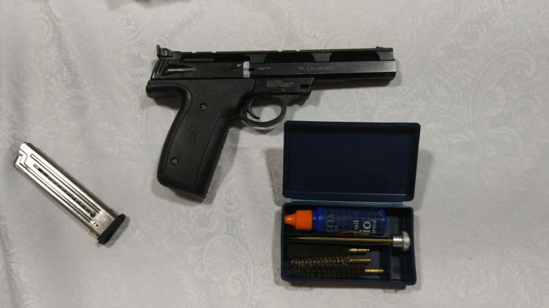 vendo S&W 22A long rifle de segunda mano, perfecta para tiradas federativas.
