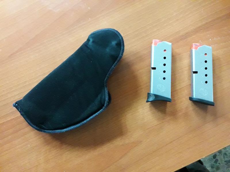-Arma, 2 cargadores, funda de transporte para arma y 2 cargadores, funda porte oculto y candado del arma (No aparece en las fotografias)