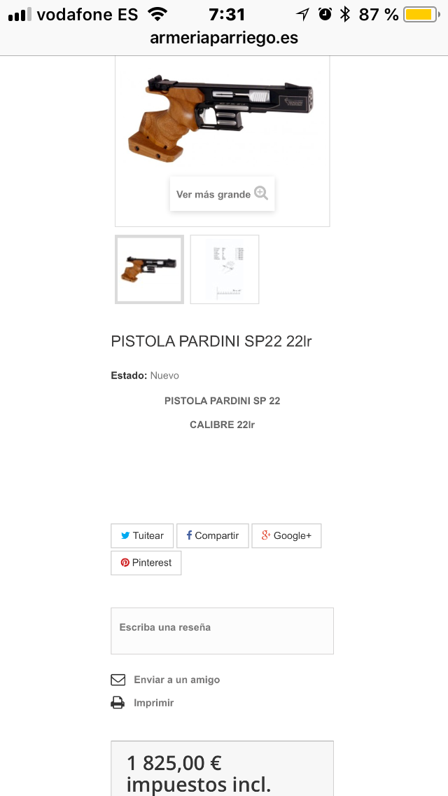 VENDO PARDINI SP STANDAR calibre 22” comprada nueva en MAYO 2016 ( con factura).