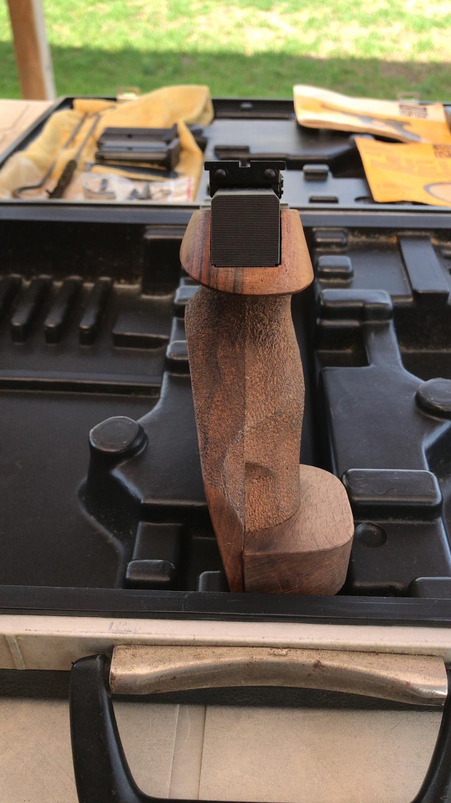Os ofrezco una bonita Walther GSP como nueva. Maletín original, los 2 cargadores, punto de mira de recambio, 2 alzas con 2 luces distintas, cola del disparador adicional, baqueta, todo original, tal como venía en origen. Con el blanco del banco de pruebas y el manual, también originales. Imposible encontrarla en mejor estado. Como si hubiera estado olvidada en el desván de la casa del abuelo, eso sí, sin criar telarañas.