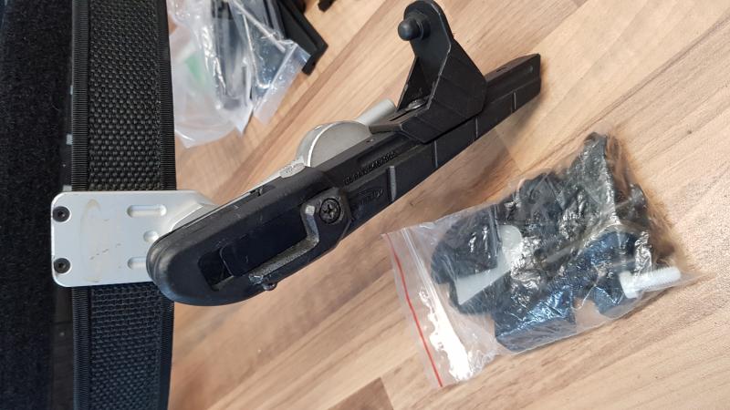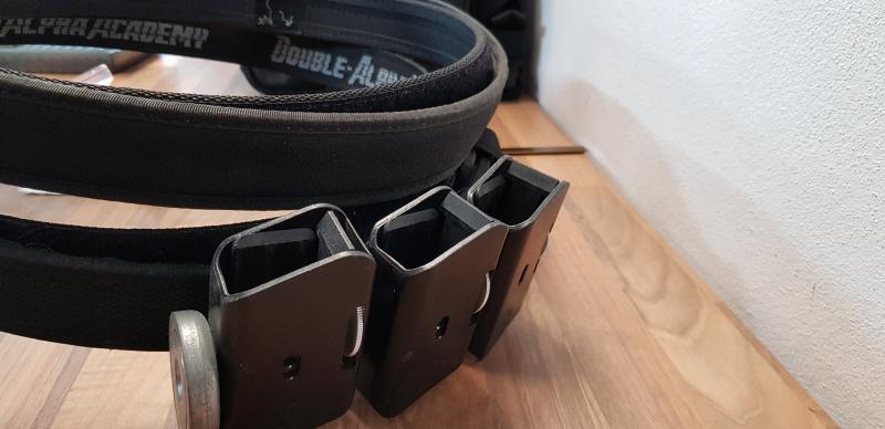 -Un cinturón de doble alfa con 3 cargadores, uno de ellos con iman y una funda extractora rápida CR SPEED II para varios modelos de arma