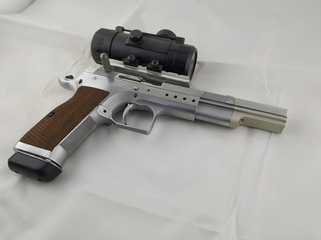 - PISTOLA TANFOGLIO CALIBRE 9 M.M. CON 4 CARGADORES Y VISOR TASCO PRO POINT PRECIO 750 EUROS.