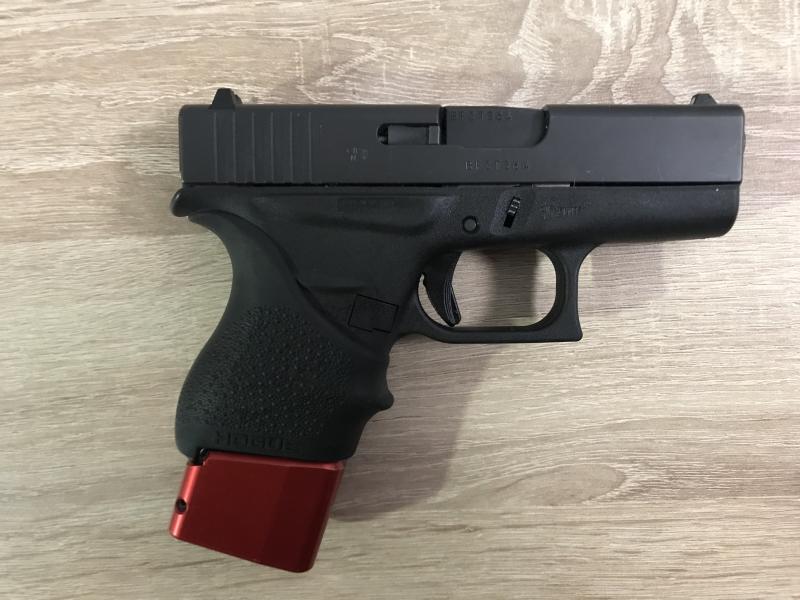 Vendo glock 43 en perfecto estado. La vendo por nueva compra. La vendo con 3 cargadores : uno el original con la extensión para el dedo meñique, otro color transparente sin extensión y otro original con una extensión de taran tactical que aunmenta su capacidad en +3 ( todos son de 6 cartuchos menos el de la extensión que es de 9). El arma es de 9mm y va de maravilla. La he usado muy poco. También añado una funda de porte oculto de kydex de la marca gorila concealment y una cacha original de hogue que mejora notablemente el agarre al ser tan pequeña el arma.Todo con su caja e instrucciones originales. Se puede ver y probar en ciudad real . Cualquier duda no dude en consultarme.