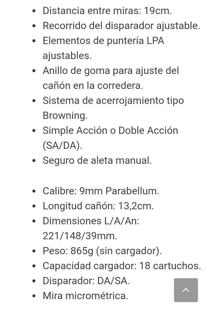 Incluye dos cargadores, fanel para cambios rápidos de cargador, la llave para regular el alza y su maletín rígido original. Guiada como deportiva.
