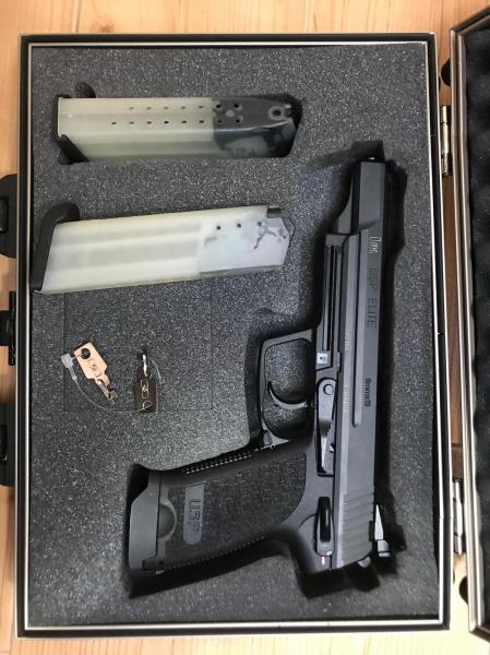 Una compañera vende HK USP Elite 9mm. Anteriormente solo ha tenido un dueño, que la compro nueva. Está impecable, a toda prueba. No habrá efectuado ni 500 disparos. Se encuentra en Granada. Se podría ver y probar en el campo de tiro de Las Gabias sin problema. Dejo su teléfono para que contacten directamente con ella. Subo algunas fotos.