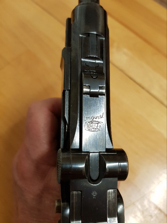 Hola compañeros, es una pistola MAUSER P08 original, calibre .30 Luger (7.65) fabricada por MAUSER-WERKE A.G. Obendorf en 1971. Cañón de 5” y seguro de culata. Perfectamente afinada. Tanto el estado mecánico como el pavonado son buenísimos. Va con funda de cuero y llave de ayuda a la carga que no se hace necesaria ya que se carga fácilmente sin ella.