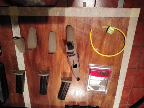 Como indica el título, es una smith&wesson MP9_M2.0 en acabado tan, nuevecita (dic-18, aún en garantía), prácticamente sin estrenar y con extras.