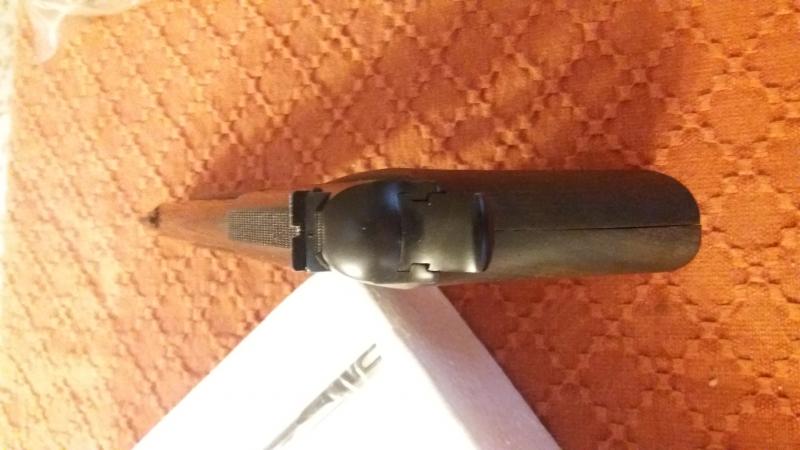 Ajustable en altura y deriva, incluye 2 cargadores, cachas de madera y dos pares de cachas de plástico además de un contrapeso.