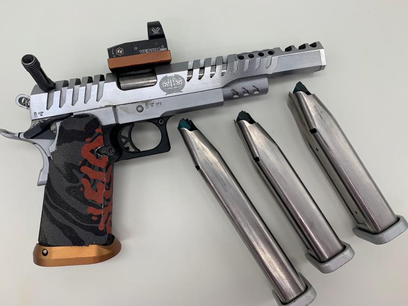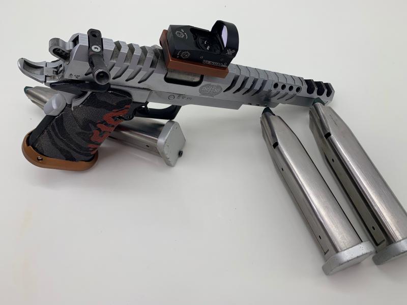 Vendo pisto marca SPS VISTA STAR de open, calibre 9 Parabellum mayor o minor, tres cargadores uno de ellos de 29 cartuchos, llevar visor pequeño marca Vortex de 8 mo, tiene cuatro años y en perfectas condiciones.
