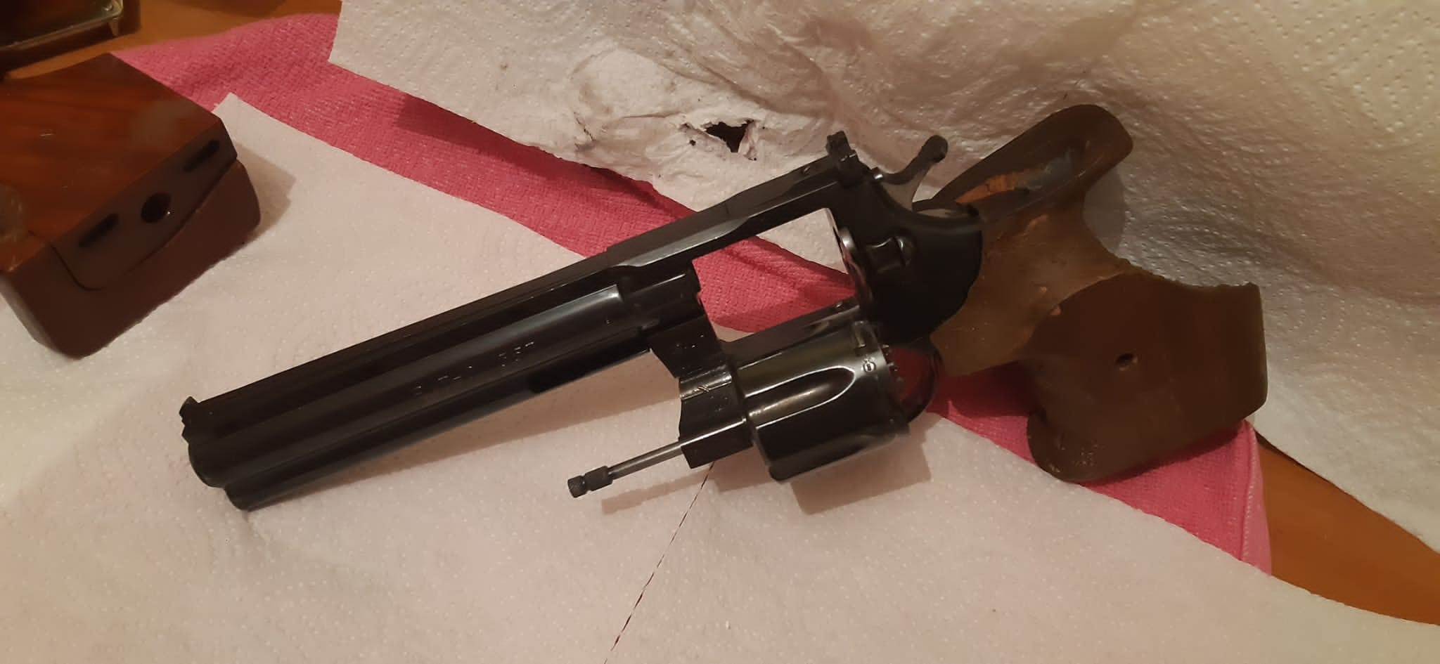 Vendo Colt Python 357, con tres juegos de empuñaduras anatómica mediana original y una de lujo.