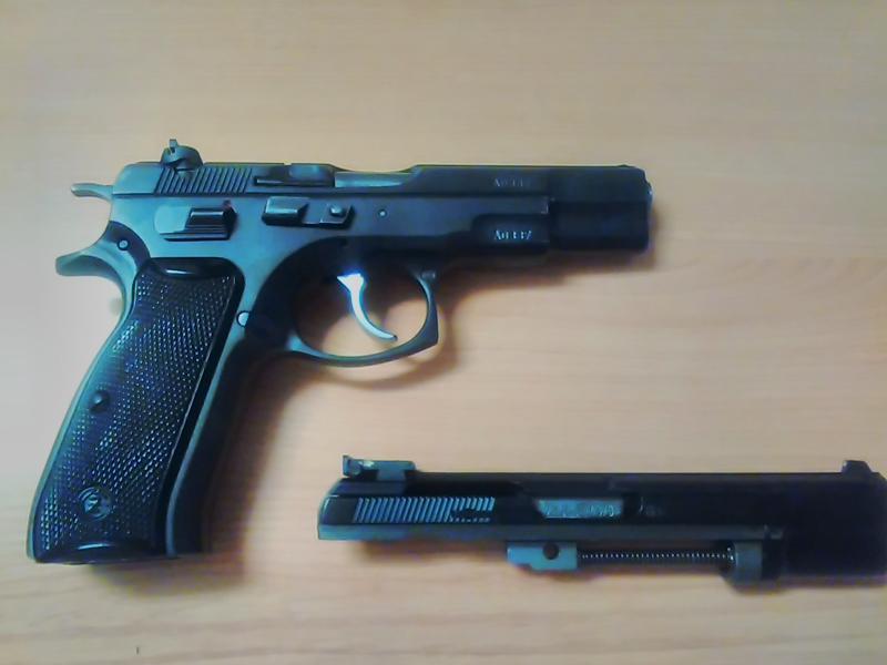 Tenemos una CZ-85-COMBAT, de 1986, o sea, un kilogramo de acero comunista debidamente forjado sin microfusiones ni modernidades, cañón de 12 cm, alza regulable en altura y deriva (del modelo antiguo, no del tipo LPA que llevan ahora), dos cargadores del tipo "C" (no se caen al presionar la retenida) y otros seis de los normales.