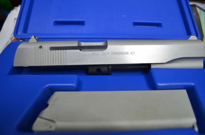 Vendo kit conversión para pistolas tipo 1911A1 de Arthur Ciener del 22lr. con su cargador correspondiente. Su precio es de 300 €