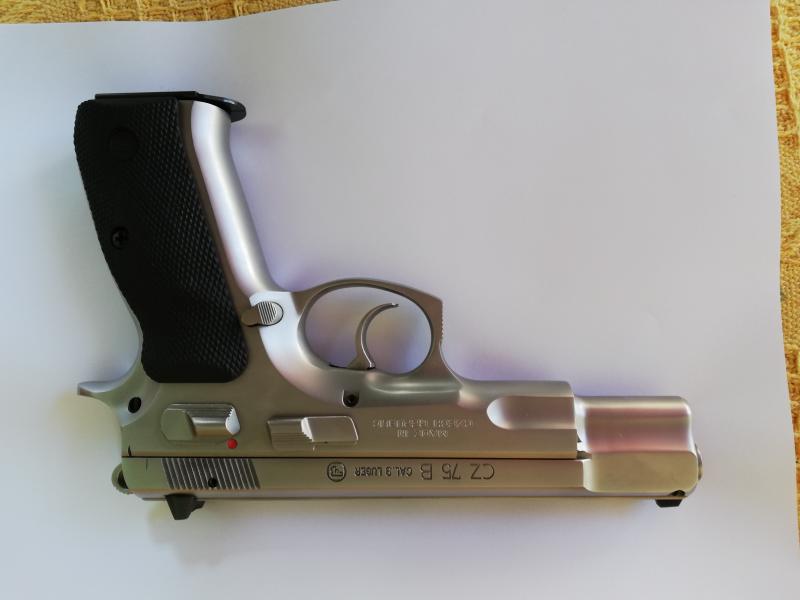 Saludos. Vendo pistola CZ 75B en acero inox. Calibre 9mm. Dos cargadores y dos juegos de cachas, uno de goma y el otro de madera ,importada de USA. También va con funda de transporte triangular de lona. Gatillo afinado, muy buen estado. La compré a un compañero y yo sólo la he utilizado 4 ó 5 veces.