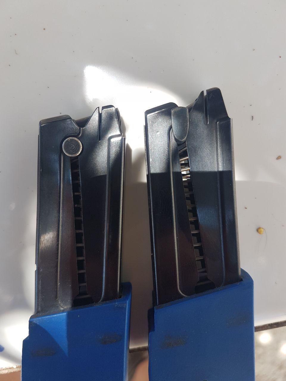 Como extra lleva en un cargador una pieza que deja abierta la corredera en el 5 disparo.