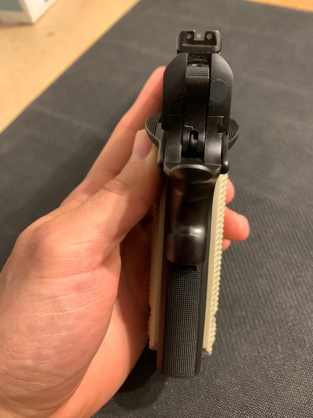 Vendo Taurus 1911 del 45ACP, como nueva, muy poco uso, guiada en F, en su caja original con sus llaves y manuales, de regalo 4 cargadores, funda Trex Arms de porte oculto y 1 aliviamuelles, 350€+ 30€ de portes si son necesarios , el arma esta en Canals (Valencia) tlf. 687993089 (VENDIDA)